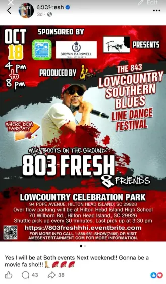 We are excited to invite vendors to be part of the 843 Lowcountry Southern Soul & Line Dance Festival! This is a unique opportunity to showcase your products and services to a lively crowd of music lovers, dancers, and cultural enthusiasts from across the region.